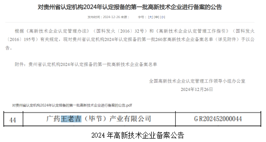 科技創(chuàng )新結碩果,賦能發(fā)展新高度|廣藥王老吉畢節公司首獲國家高新技術(shù)企業(yè)認定