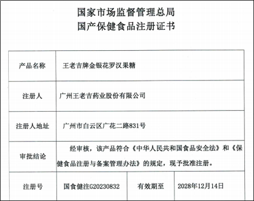 王老吉藥業(yè)獲得國家市場(chǎng)監督管理總局頒發(fā)的“王老吉牌金銀花羅漢果糖”國產(chǎn)保健食品注冊證書(shū),至此,王老吉藥業(yè)擁有了中成藥、保健食品、普通食品三類(lèi)產(chǎn)品,業(yè)務(wù)板塊不斷擴大,本草潤喉糖果產(chǎn)品群不斷壯大。