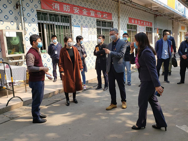 公司高管陪同市領(lǐng)導參觀(guān)了注塑、模切、組裝車(chē)間、公司食堂等區域。參觀(guān)結束后的溝通會(huì )議上,人力資源部經(jīng)理周旋就公司復工防疫落實(shí)情況向市領(lǐng)導進(jìn)行了匯報,包括防疫小組成立情況、公司的防疫方案、防疫物資準備情況、廠(chǎng)區食堂及宿舍人員管控和安排情況、公司履行社會(huì )責任的捐贈情況,以及公司目前存在的需要政府支持的困難。